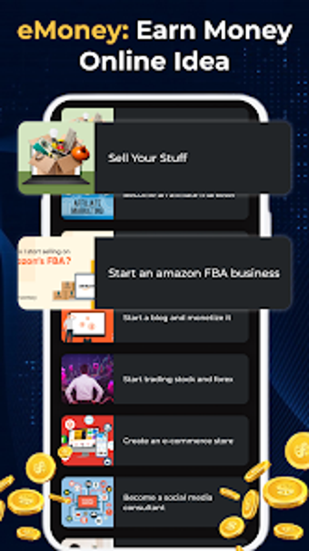 De app biedt een uitgebreide gids met ideeën en instructies, zodat gebruikers hun eigen bedrijf vanuit huis kunnen opstarten. eMoney stelt gebruikers in staat om verschillende geldverdienstrategieën te verkennen, inclusief het verdienen van geld door games te spelen en het benutten van freelance mogelijkheden. De focus ligt op het creëren van meerdere inkomstenstromen en het bieden van waardevolle inzichten in de wereld van online werk.